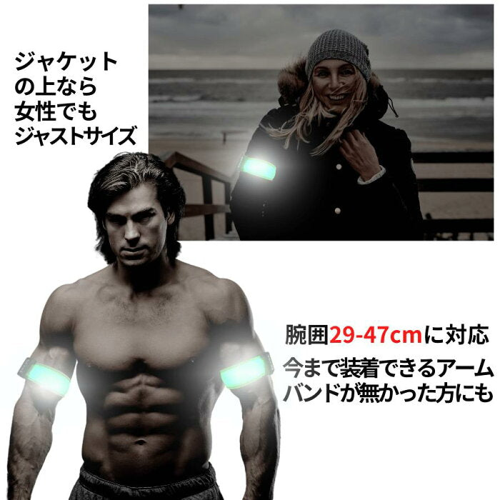 ◆「気付かなかった」とは言わせません!視認力抜群のLED充電式反射アームバンド ビッグサイズ◆