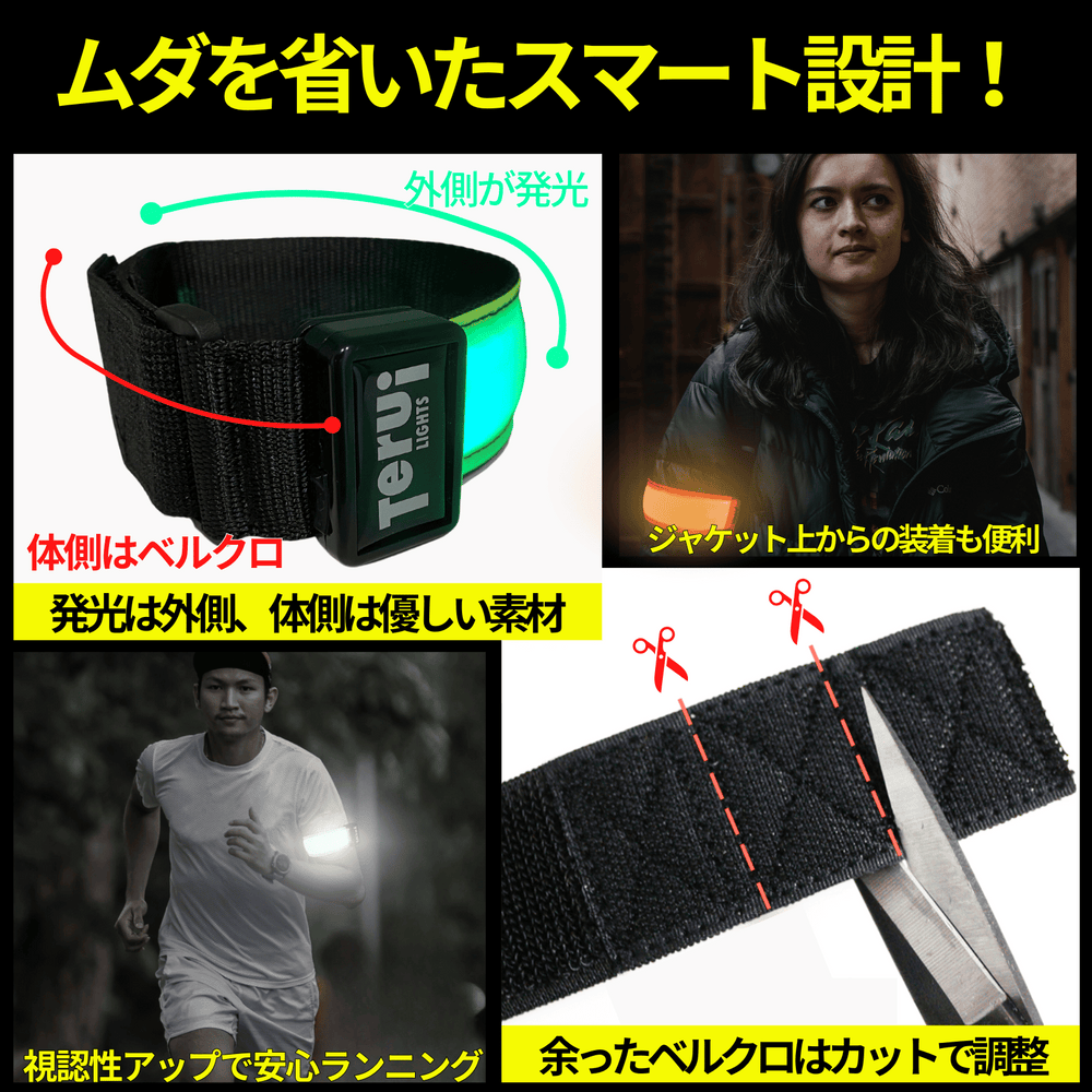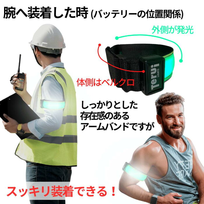 楽天ランキング1位獲得 67,000本の販売実績のあるTERUI LightsからLED充電式アームバンドのビックサイズが登場!2本入りのお得なセットです。