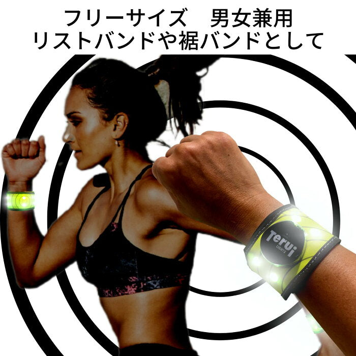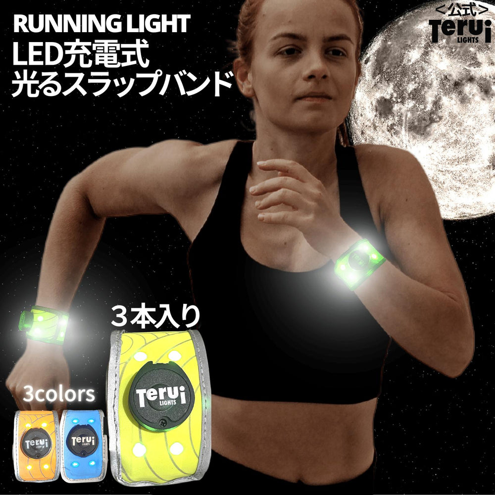 光るリストバンドで夜道も安心 もう車やバイクとの衝突の心配なし これで安心してナイトラン フリーサイズ TERUI Lights 充電式 スラップ装着 お得な3本セット