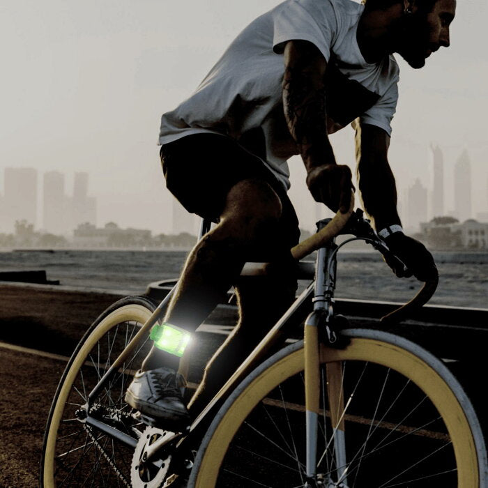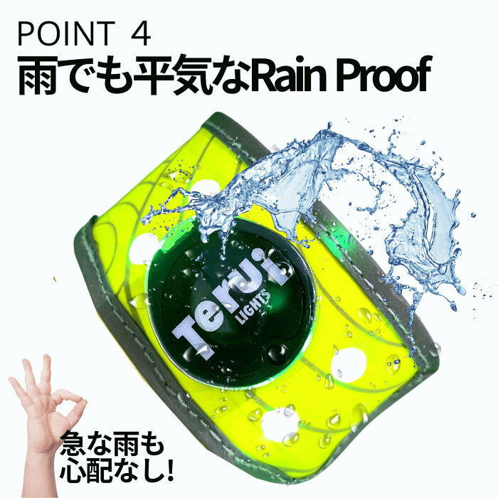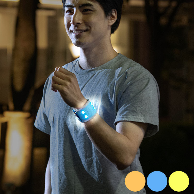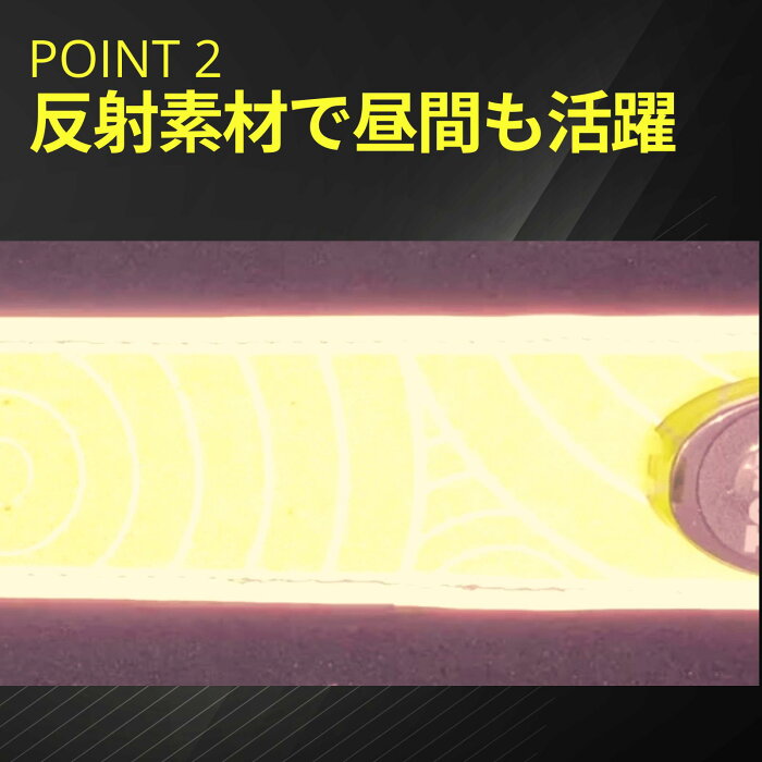 昼はライトOFFで反射バンドとして、夜はライトONで光るバンドとして活躍します