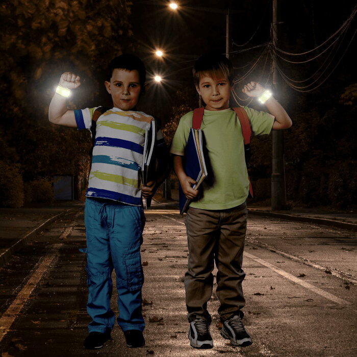 スラップバンドの光により車のドライバーに見つけてもらうことができます